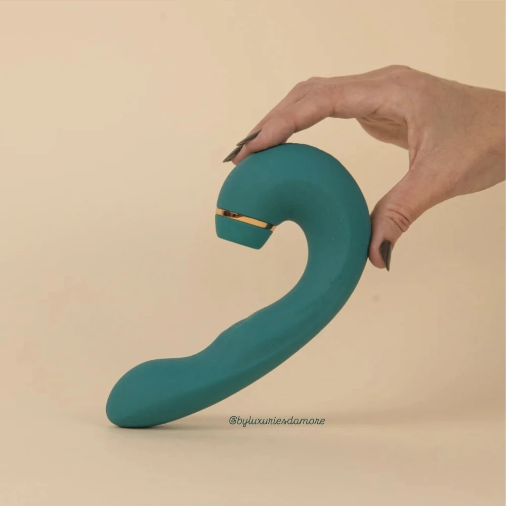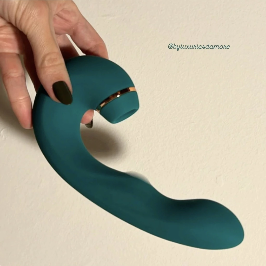 Imagina: sucção no clitóris, dedilhar no ponto G e vibração estimulando todo canal vaginal, todos podendo ser usados separadamente ou AO MESMO TEMPO! É isso que eu chamo de vibe indescritível 🗣