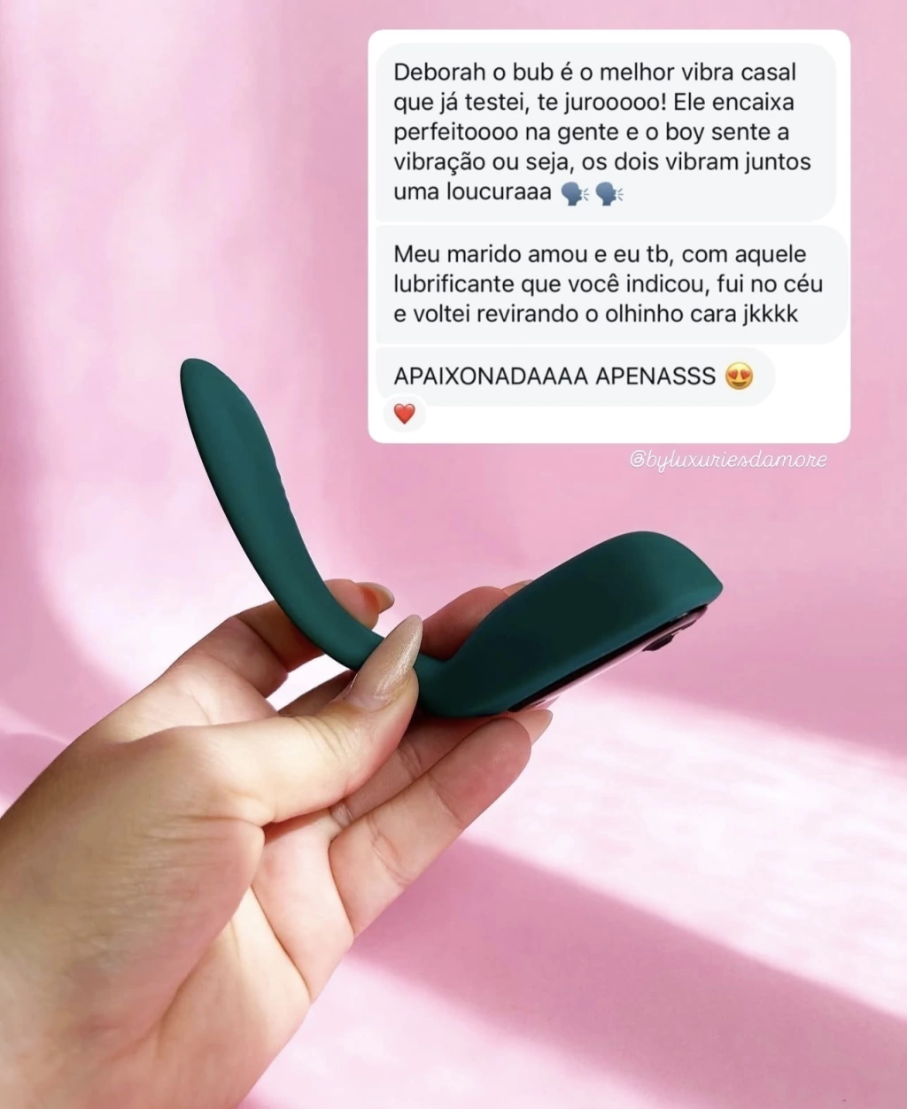 Já imaginou ter um vibra que você pode usar juntinho com a parceria durante a penetração e os dois podem sentir... O Bab é ele. Seu formato “C” é ideal para encaixar perfeitamente entre a vagina e o pênis e proporcionar a ambos os parceiros desfrutar deste momento cheio de fogo. Enquanto o homem sente as vibrações da base até a glande do pênis, a mulher pode aproveitar suas deliciosas vibrações como irresistíveis estimulações que irão instigar clitóris e ponto G.