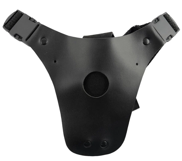 Fabricada em material sintético semelhante à couro e revestimento interno aveludado para garantir conforto, fácil acomodação e uso correto do seu acessório. A prótese é colocada no furo da cinta para maior resistência, nesta são fixadas tiras para amarrar em poliéster, ajustáveis e reguláveis garantindo resistência além de possuírem tamanho ideal para seu travamento.