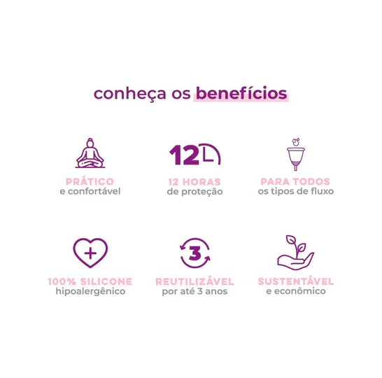 O coletor menstrual não resseca a vagina, não causa odores desagradáveis, diminui as infecções de recorrência e é a solução para pessoas que costumam ficar com a pele irritada e/ou tem alergia a absorventes descartáveis.