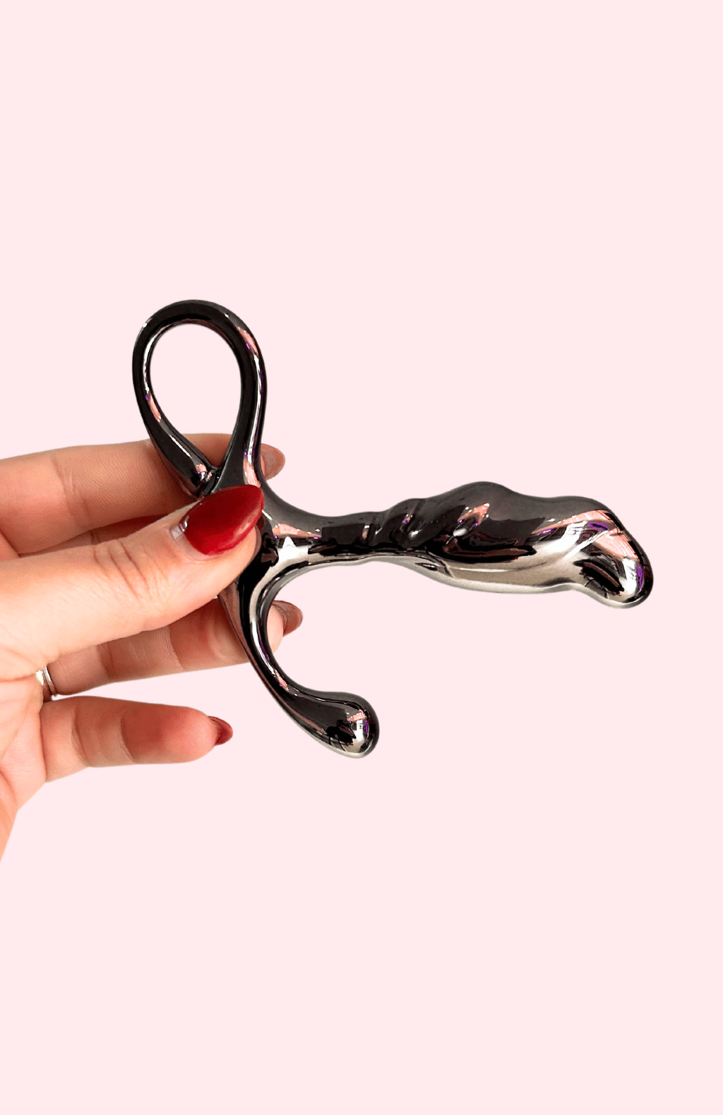 O estimulador prostático com formato em L é fabricado em metal grafite e tem formato anatômico, se adequando aos mais diversos tipos de corpos masculinos. É um produto pensado para estimular não só a região anal, mas também a região do períneo. Produto super funcional que serve tanto para prevenção de câncer até impotência sexual e prazer intenso masculino.