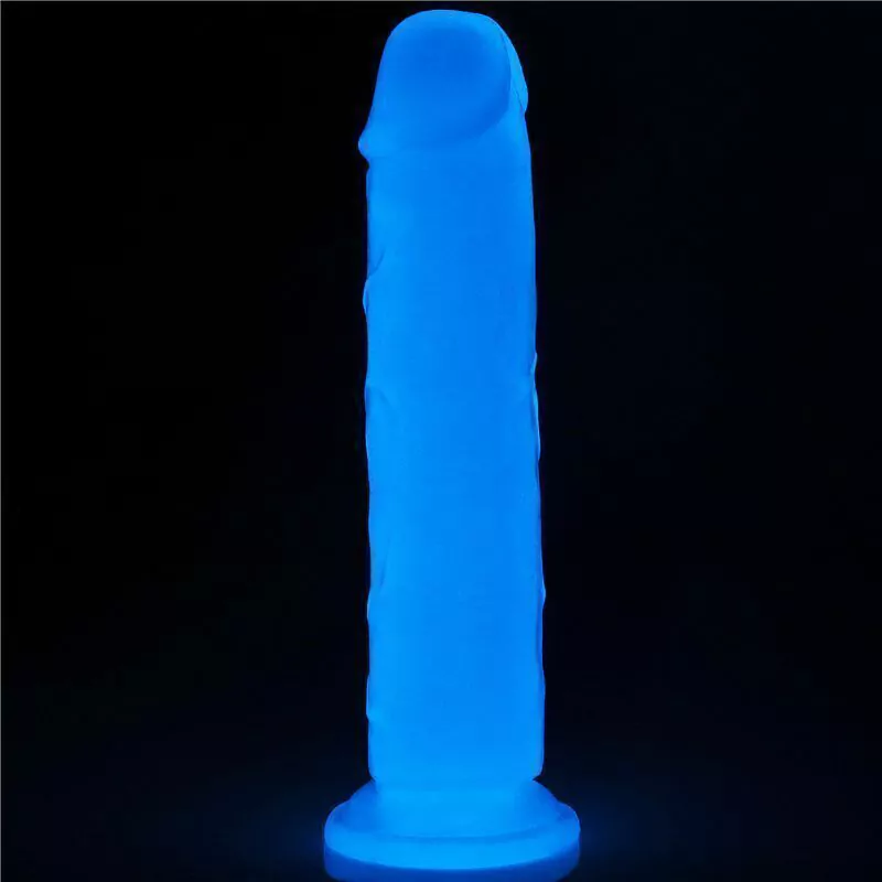 Prótese macia com textura de veias e material realístico. Possui ventosa na base, o que facilita a penetração segura, já que assim é possível grudar em superfícies lisas. Além disso, a prótese fica luminosa/flurescente quando está escuro.